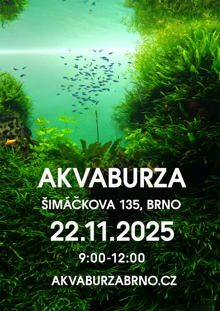 Předvánoční akvaristická burza 22.11.2025 od 9 do 12 hod Upozornění: Termín další burzy naleznete vždy i na lístku z burzy předcházející, schovejte si jej!