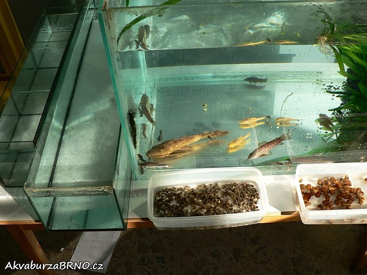 | Popis fotografie: | Zdena Míšová (Catfish) nabízela k prodeji různé druhy sumců, od mladých ryb až po poměrně vzrostlé exempláře. Dále pak ampulárky a vzala sebou i pár piskořek. |
